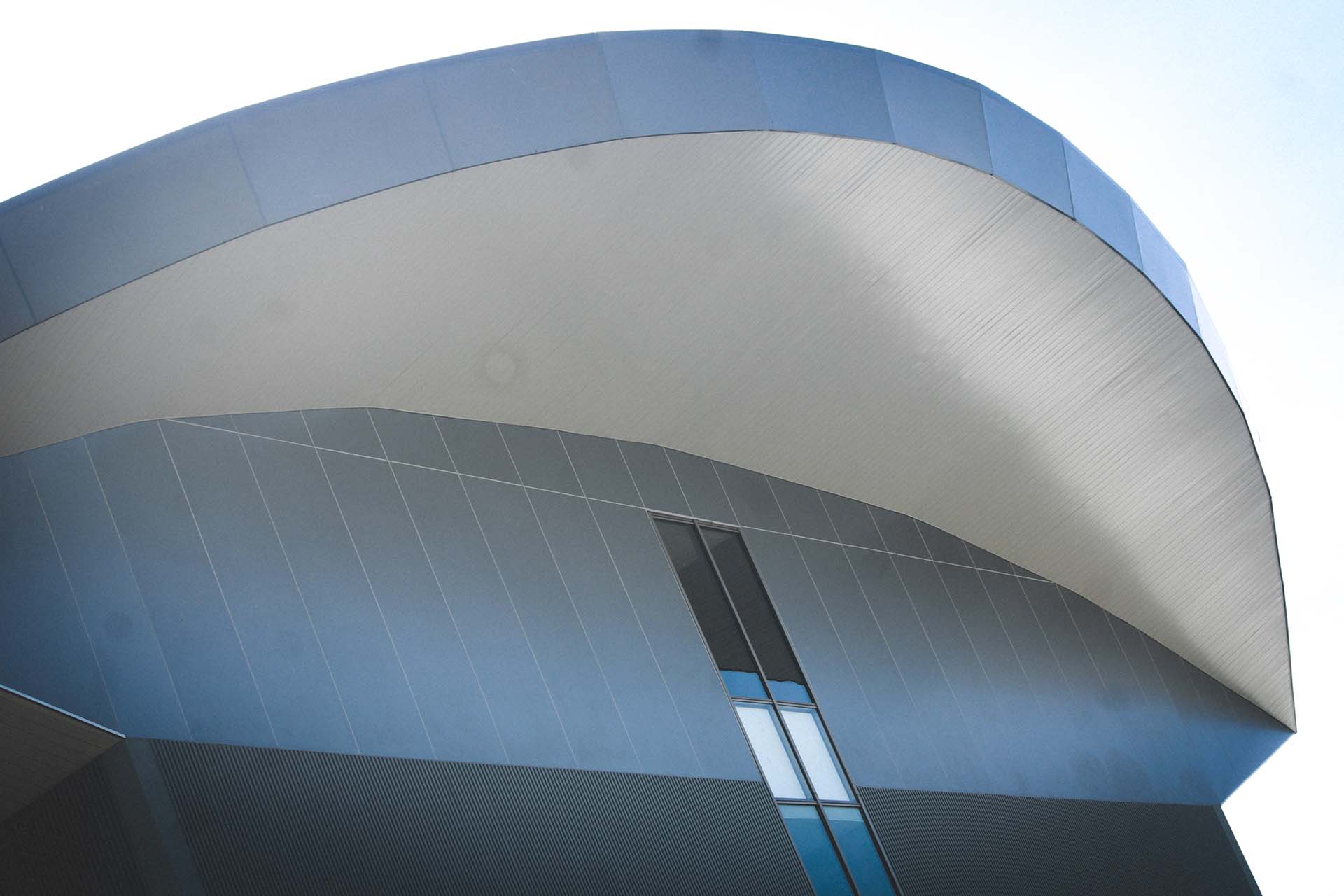 During building, Ribon framing was suspended from the steel roof structure eaves to form the curved soffits at each end and sloping soffits along each side. Approximately 1500m2 of Ribon soffits were used on this part of the main building with another 1500m2 used to form the front canopies at ground level.